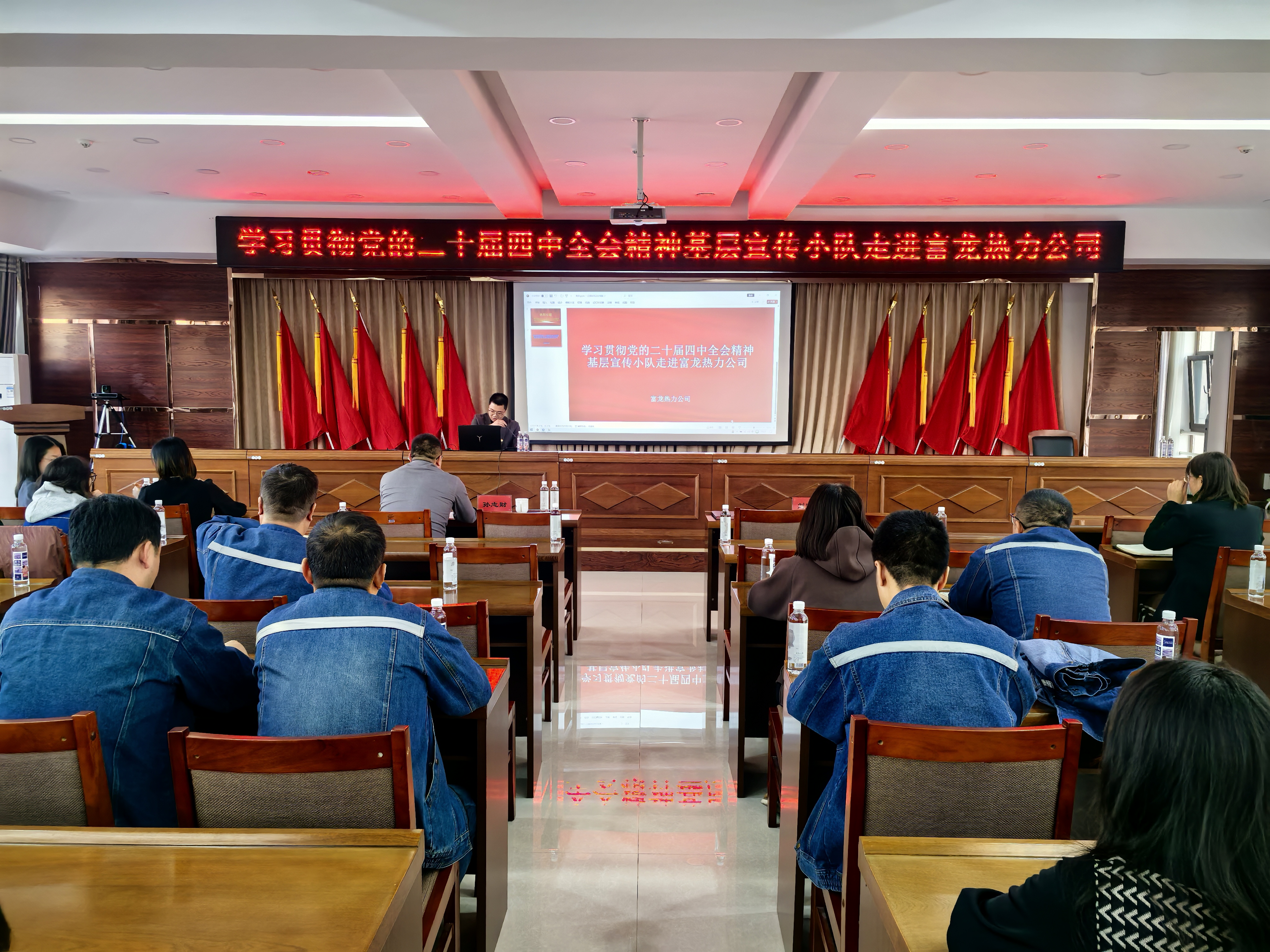 下午,小分队来到富龙集团,与企业职工交流学习体会。市委党校党史党建教研室讲师黄桂婷围绕“坚持和完善统筹城乡的民生保障制度”等内容,结合供热保障等民生实事,激励一线干部职工立足岗位作贡献,把学习成果转化为服务民生的实际行动。
